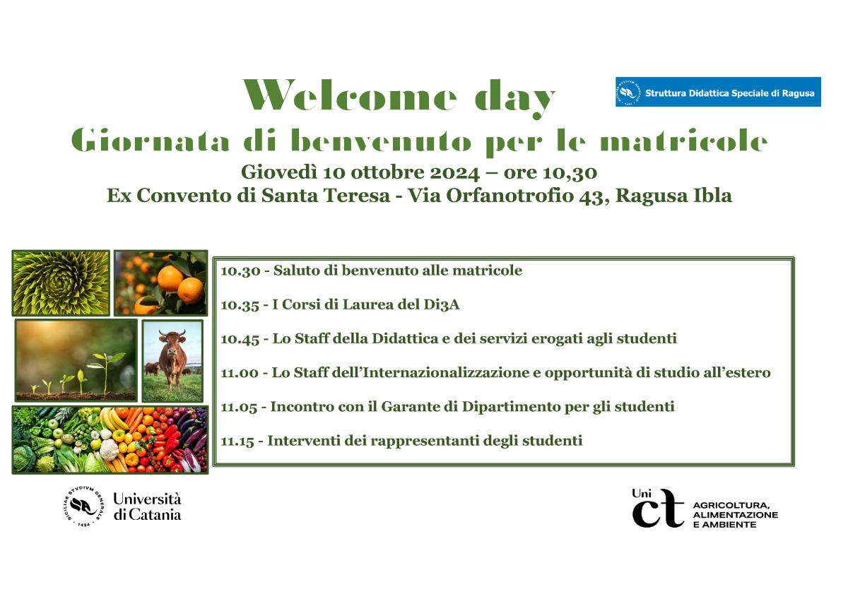 Giovedì 10 Ottobre - ore 10.30, gli studenti immatricolati al primo anno del Corso di laurea in "GESTIONE DEI SISTEMI PRODUTTIVI AGRARI MEDITERRANEI" (L25 - sede di Ragusa) sono invitati a partecipare alla mattinata di benvenuto.